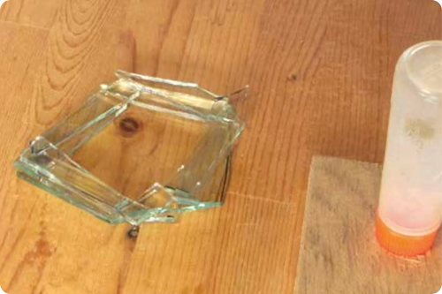 板ガラスをお好きなように割り切ってお好きなデザインに仮着けします。